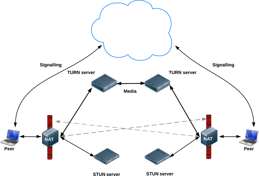 WebRTC支持对等通信,但它仍然需要服务器,以便客户端可以交换元数据,以通过称为信令的过程协调通信,并处理网络地址转换器(NAT)和防火墙。