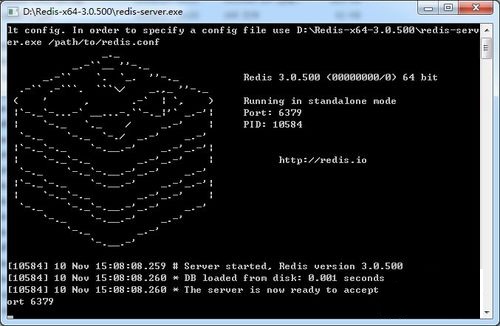 2) 启动redis服务:若想要正常连接到redis服务器,则必须先启动redis服务。windows系统中,找到安装包下的redis-server.exe,双击,出现以下界面,则说明已正常启动。