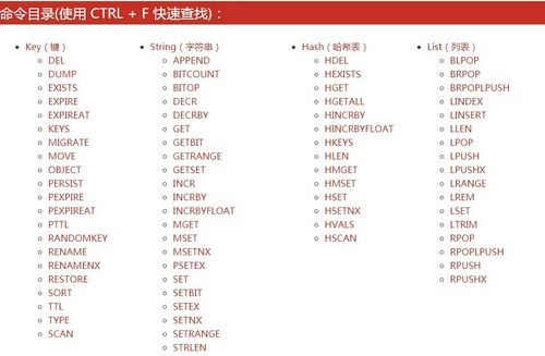 5) redis命令:redis有String,Hash,List,Set,SortedSet 5种数据类型,Key,pub/sub,transaction,script ,server,connection等,每个操作有对应的命令。熟悉各种命令,是使用redis的基础。