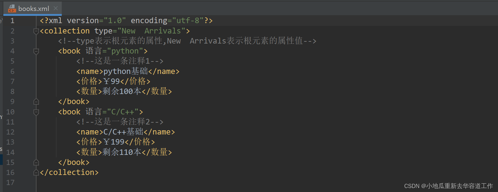 运行后,在同目录下生成了books.xml文件,文件内容如下: