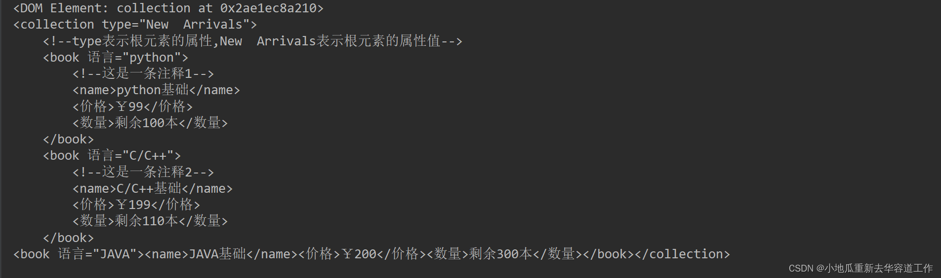# print(rootNode.toxml()) # 显示移除第一个book子元素的xml数据