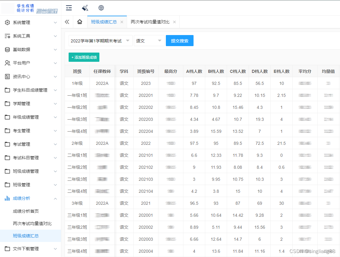 教学均量值的计算方法与软件开发 一般按人数比例可设为15%、25%、30%、25%、5%。假设被检测人数为200人,那么五档人数就分别是30、50、60、50和10人,然后依据这个人数来划定各档最低分数线。