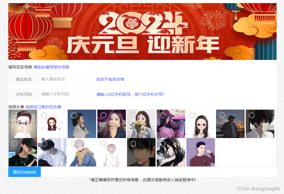 晚会抽奖程序使用说明 ##3.也可以后台手动批量导入签到名单,导入时自动比对员工库状态,将导入结果写入excel表格,可以下载excel文档查看导入结果。点击抽奖按钮,抽奖取后台设置奖项的对应人数,进入获奖名单表,后台可导出获奖名单。###2.前台用户扫码登录网站手动签到,签到时比对员工库,找到则进入抽奖用户库,可以抽奖。5.后台管理员也可以查找员工数据手动补签参与抽奖,或取消签到删除单个抽奖列表。未找到的姓名,进入抽奖库类别设置为未知,需要后台手动修改允许抽奖。此程序能减轻现场抽奖名单录入的工作量。#晚会抽奖程序使用说明。