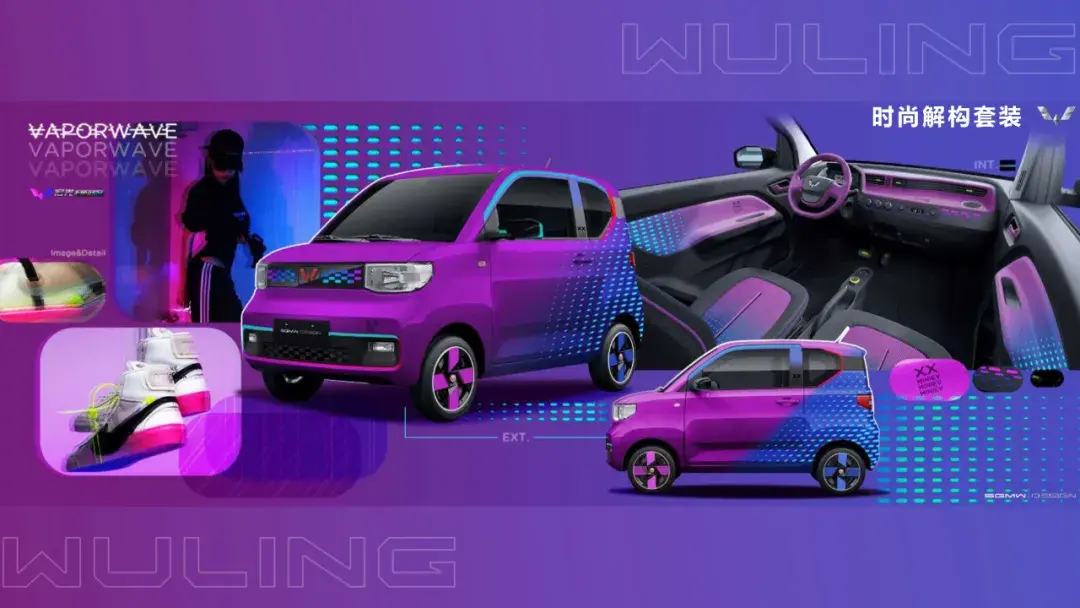 面对平平无奇的车色,团队决定与世界权威色彩研究机构PANTONE合作,共同发布了三款五菱时尚色,并应用于宏光MINIEV马卡龙车型上。