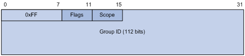 · Group ID:112比特,IPv6组播组的标识号,用来在由Scope字段所指定的范围内唯一标识IPv6组播组。