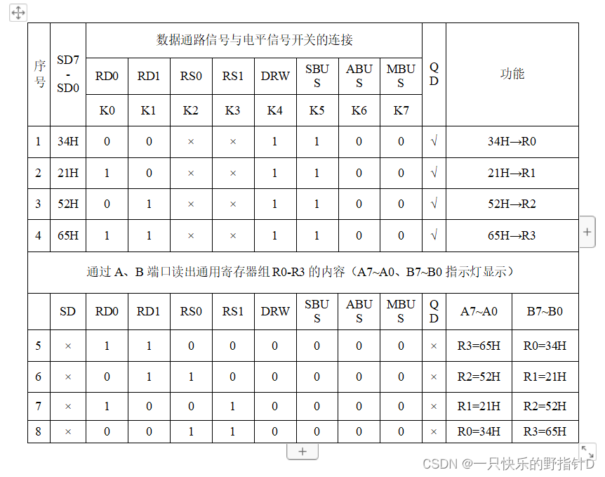 | 4 | SEL1、SEL0(RS1、RS0) | 选择送ALU的B端口的寄存器 |