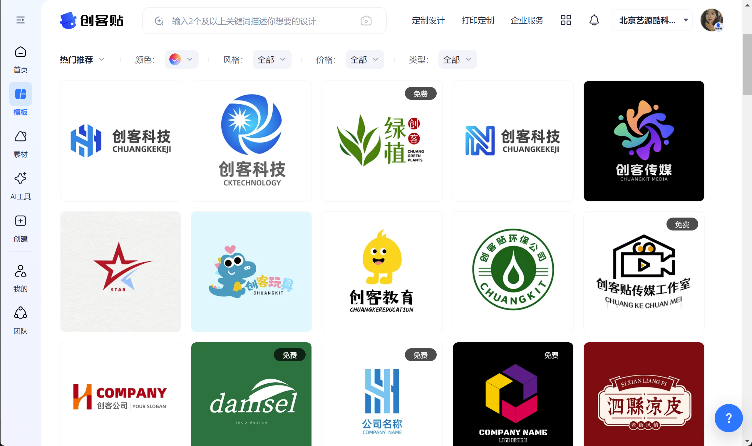 打开创客贴的 logo 一键生成界面,映入眼帘的是琳琅满目的模板库。这些模板涵盖了各行各业,无论是科技初创公司追求的简约现代风,还是艺术工作室钟情的文艺复古范,亦或是餐饮品牌需要的活泼亲和感,都能在这里找到对应的灵感雏形。