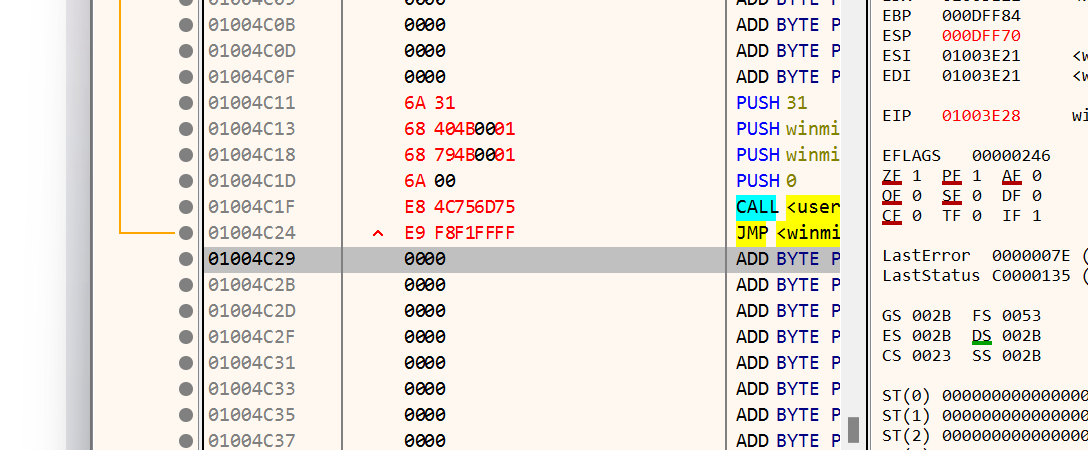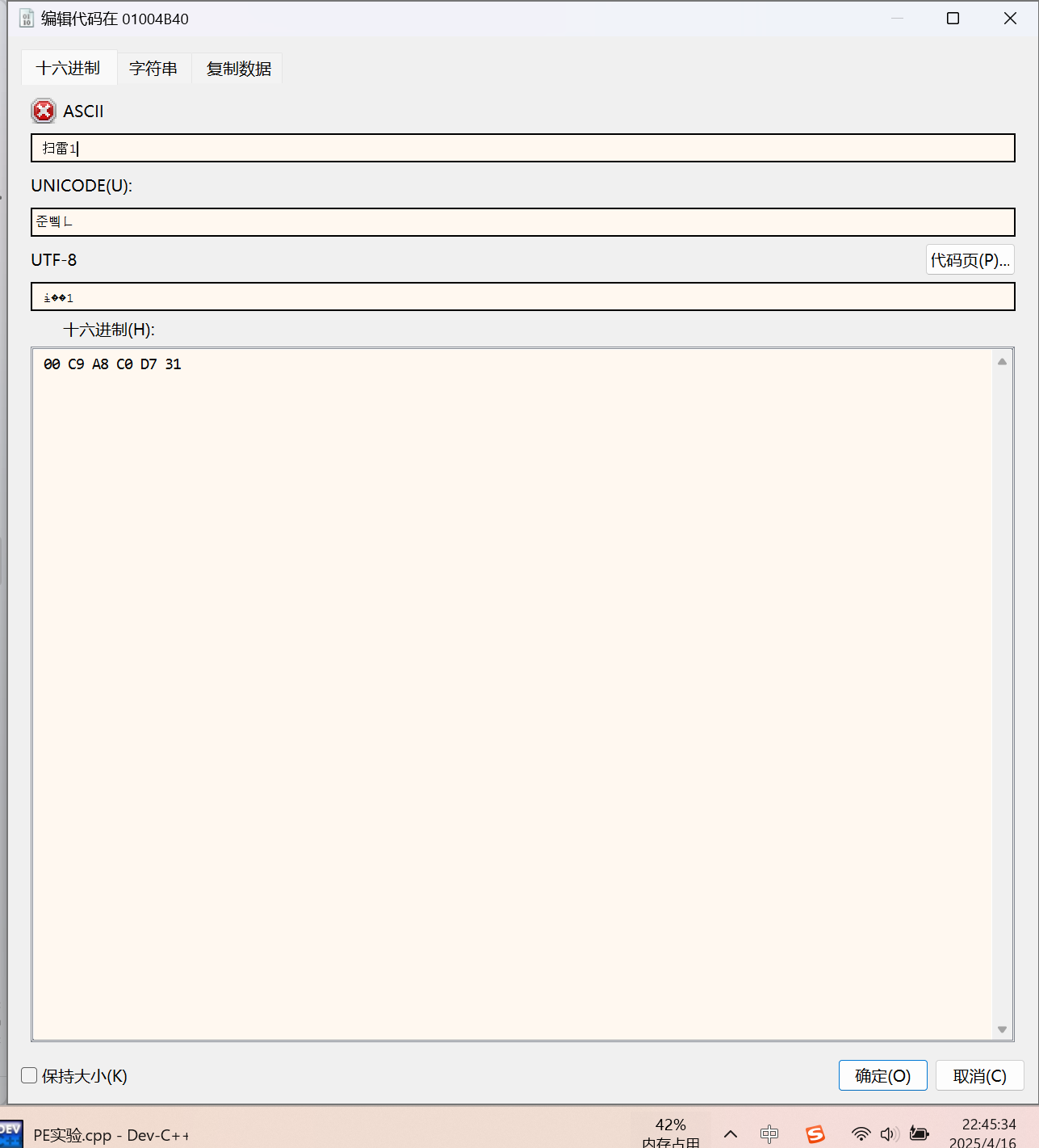 选择新文件用010打开通过改变地址:第一个PUSH上面的地址 保存