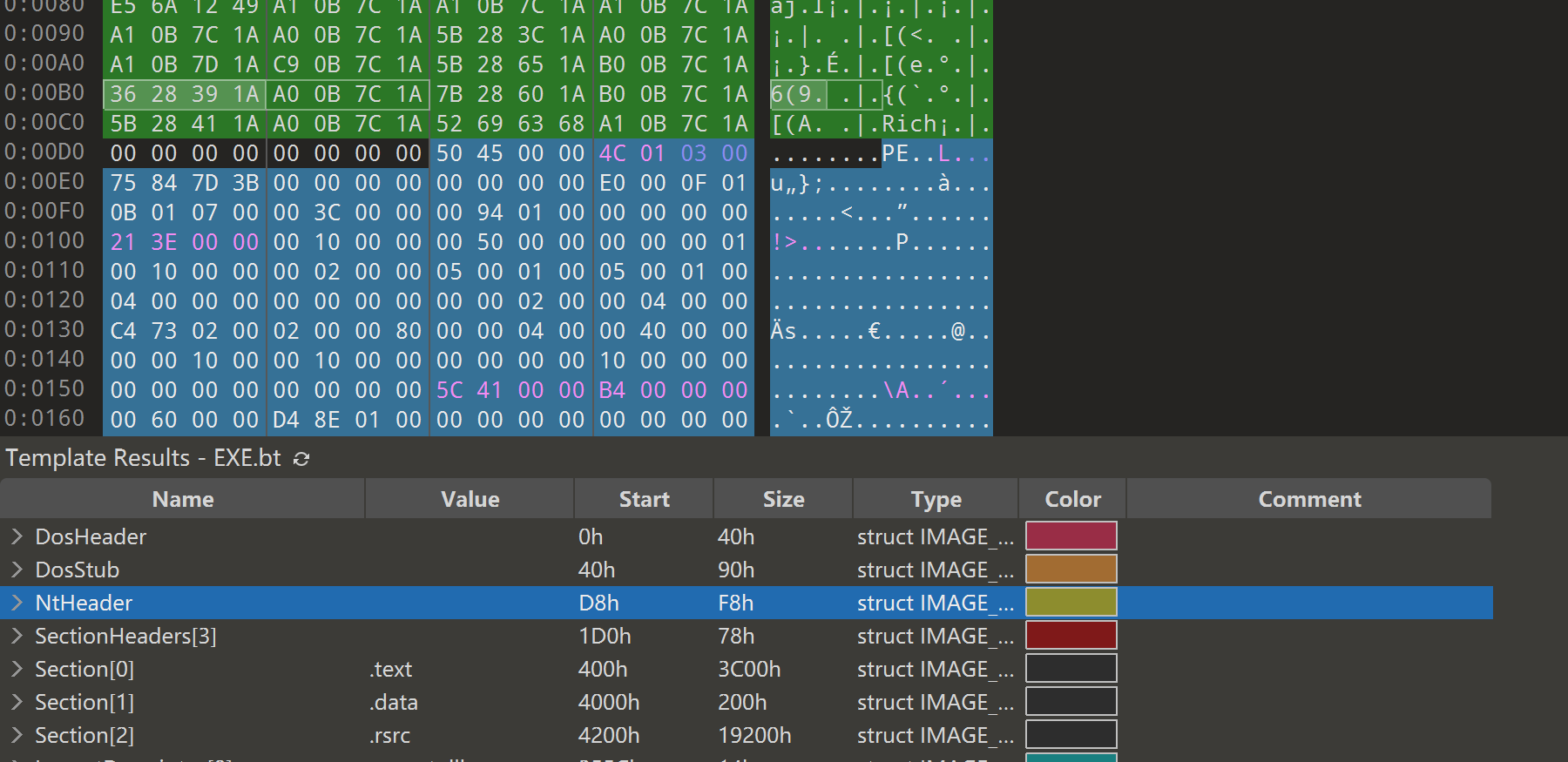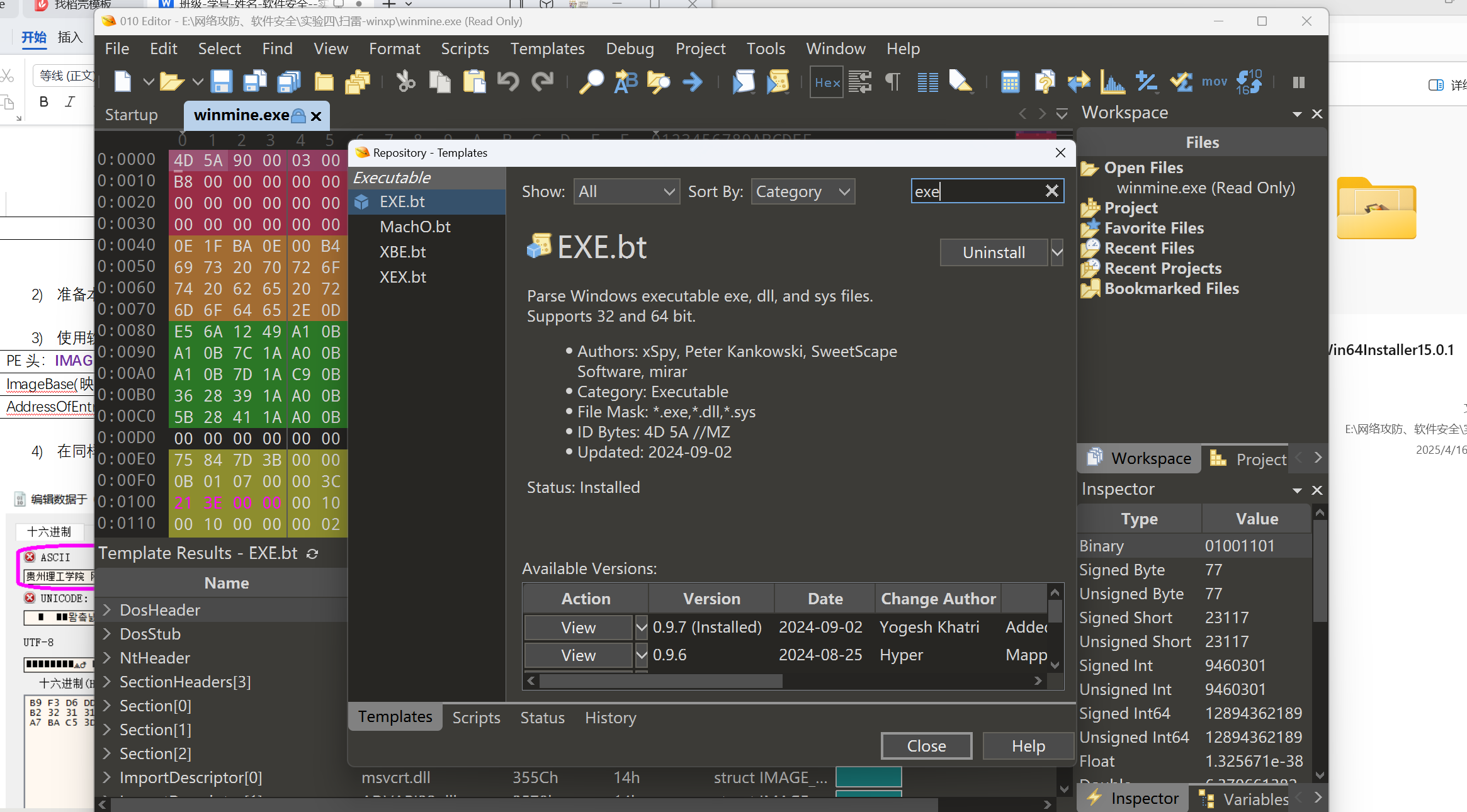 1.先下载010Editor和x32dbg。在通过下载010Editor 中的exe.bt 。