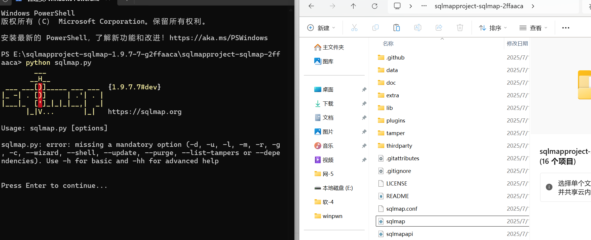 1、打开终端输入python sqlmap.py