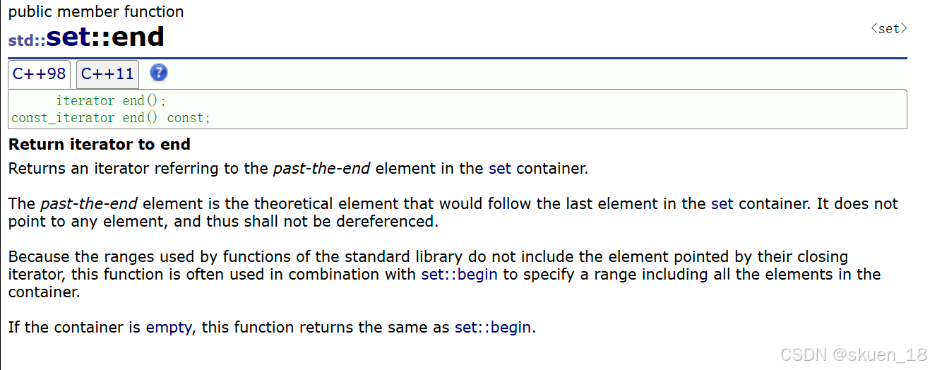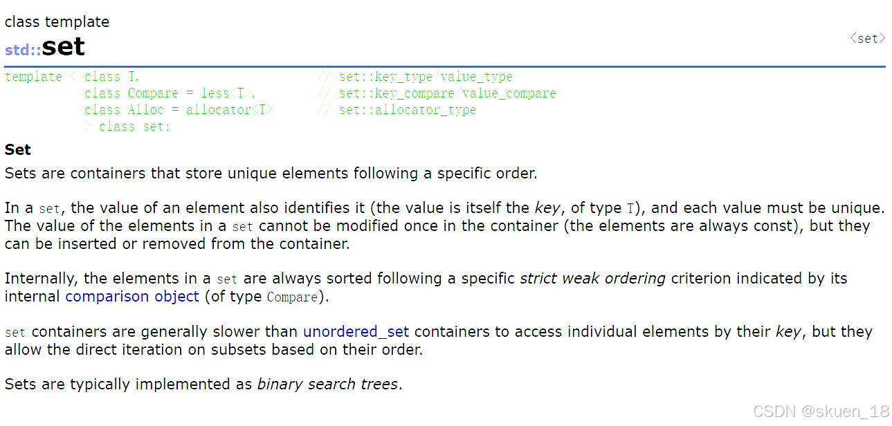 下面我截的图不太清晰,大家可以上这个链接set - C++ Reference,看看有关set的介绍