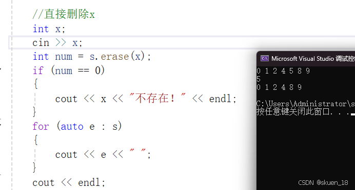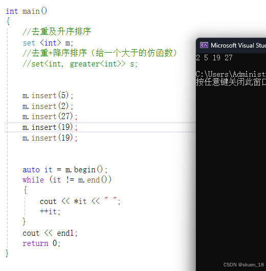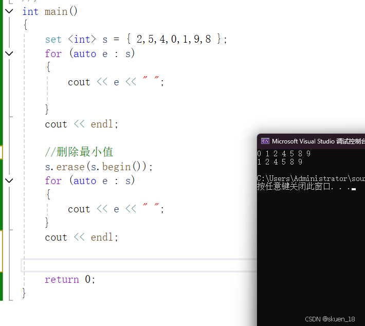 set会对这串数据进行升序,而我要删除的是首元素,即是数据中最小的值