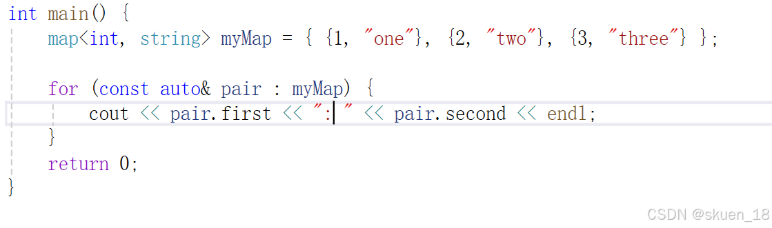 cout << pair.first << " : " << pair.second << endl;