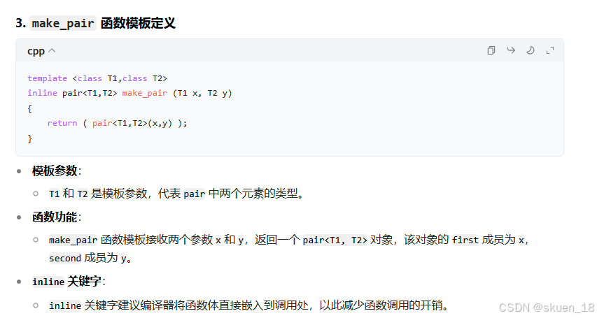 template <class T1,class T2>inline pair<T1,T2> make_pair (T1 x, T2 y)