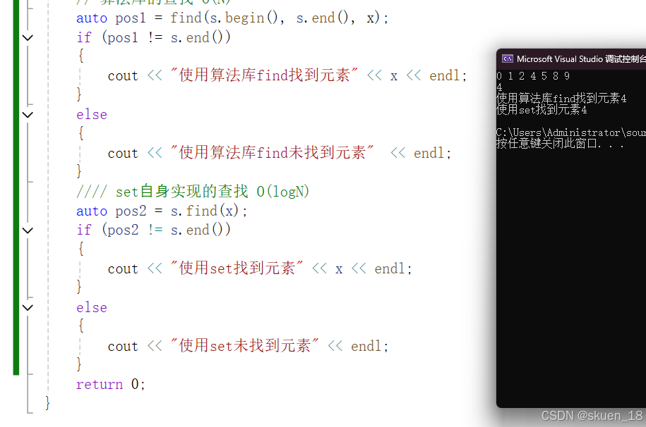 二是:set⾃⾝实现的查找 O(logN)