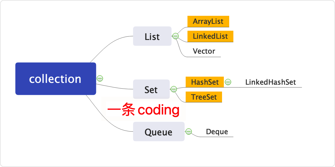 collection和Map两个接口。标注为这个颜色的为高频重点。