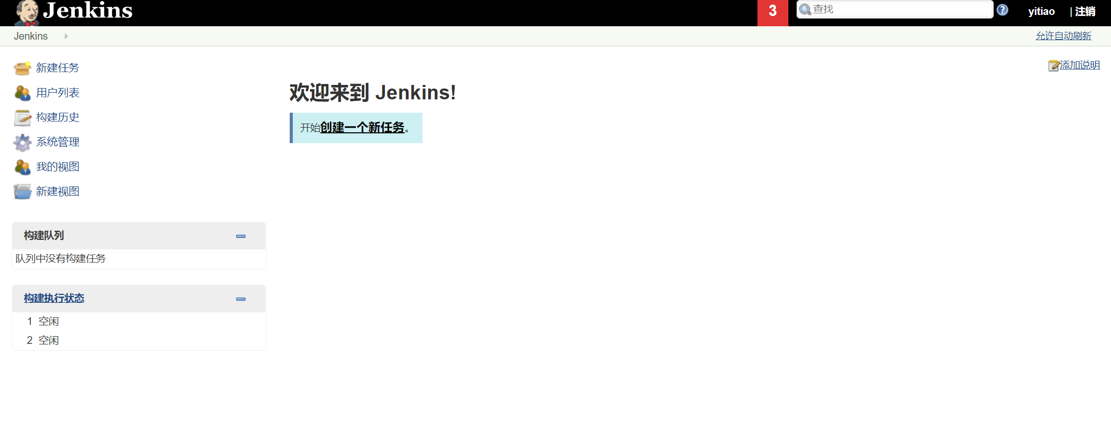 进入Jenkins 需要按照其提示打开日志文件获取密码,不赘述。