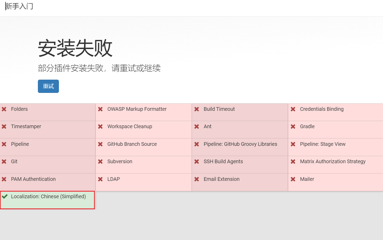 选择安装部分插件,因为网络原因,大概率会安装失败,所以只需要勾选最后一个中文插件就好了。