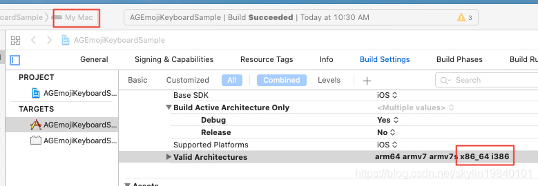 第三步比较重要,因为一般老的项目只支持iOS,不会有x86_64/i386架构,需要手动添加,否则会出现下面的错误: