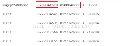 address 表示运行时地址、对应崩溃地址堆栈中第一个地址,即0x0004fbed ,实际上,崩溃地址堆栈中+号前后的地址相加即是运行时地址,即0x00048000+31720=0x0004fbed