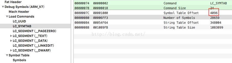 跟我们符号表有关的两个地方,一是”LC_SYMTAB”, 二是“LC_SEGMENT(__DWARF)” -> “Section Header(__debug_line)”。