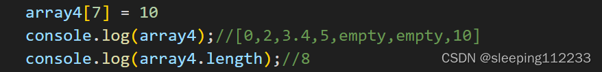 大于:若修改长度大于原长度,则没有值的数组元素会占用空存储位置
