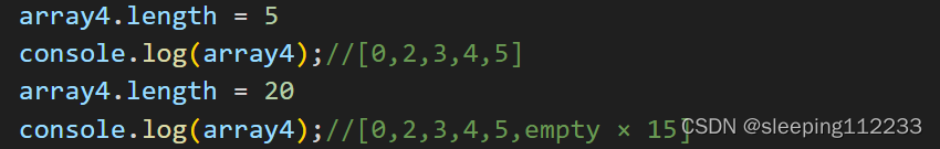 小于:若修改长度小于原长度,则多余的数组元素将会被舍弃