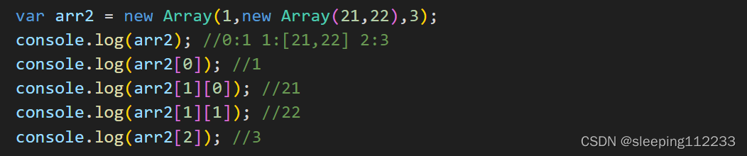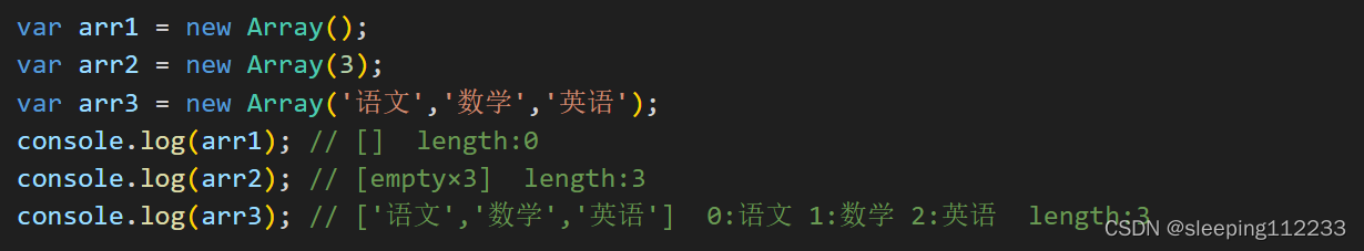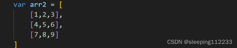 数组是存储一系列值的集合,它是由零个,一个,多个元素组成的,各元素之间使用逗号 “,” 隔开。