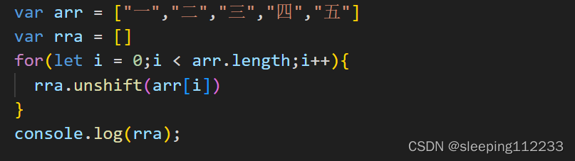 需求:将数组["一"、"二"、"三"、"四"、"五"]反转,翻转后的新数组为["五"、"四"、"三"、"二"、"一"]