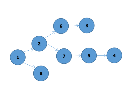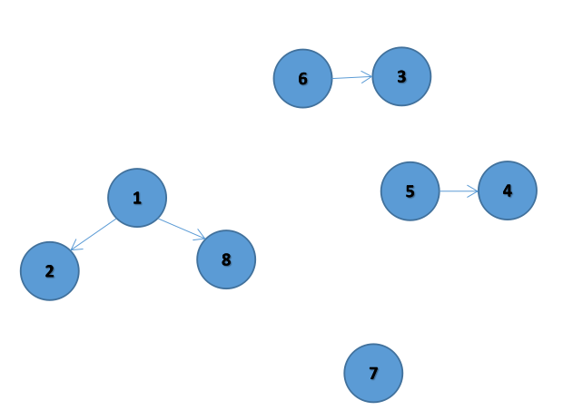 那么我们就先从1走到8车尾,然后使两个车尾连接,谁连谁都无所谓,假设8→3,那么3就是最终的车尾。我们会发现车头可以是无数个