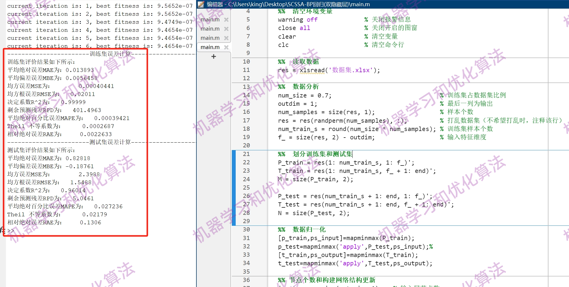 (双隐藏层)基于改进麻雀搜索算法优化BP神经网络(SCSSA-BP)多变量回归预测 (多输入单输出)