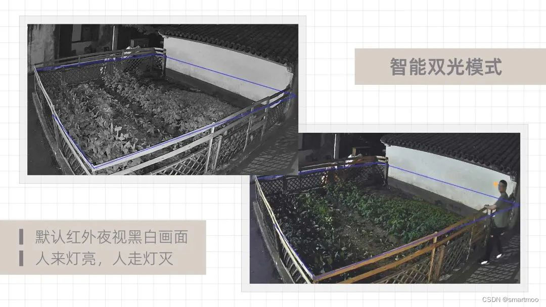 双光不仅仅是两种灯,2种补光灯在白天黑夜2种场景下,可以配置出8种不同的灯光效果,可以按实际需求配置!
