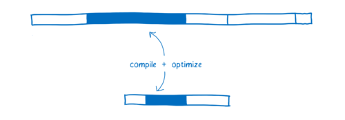 WebAssembly 比 JavaScript 的压缩率更高,所以文件获取也更快。即便通过压缩算法可以显著地减小 JavaScript 的包大小,但是压缩后的 WebAssembly 的二进制代码依然更小。