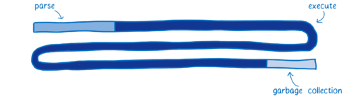 这里注意:这些任务并不是离散执行的,或者按固定顺序依次执行的。而是交叉执行,比如正在进行解析过程时,其他一些代码正在运行,而另一些正在编译。