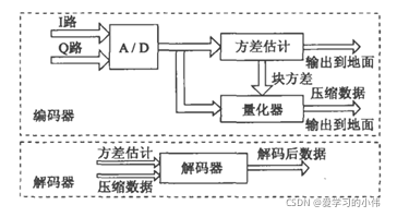 SAR原始回波数据在距离向和方位向符合缓变方差零均值的高斯分布,BAQ算法将回波数据分成若干小块,利用小块内数据的动态范围远远小于整块数动态范围的性质,实现整块数据的自适应量化。从全局来看,BAQ可以获得较大动态范围数据压缩。基本原理如下图所示: