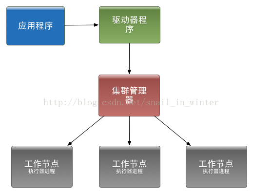 3 驱动器程序与集群管理器通信,申请资源以启动执行器节点