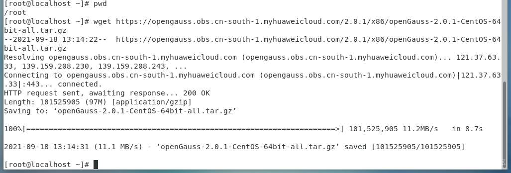 wget https://opengauss.obs.cn-south-1.myhuaweicloud.com/2.0.1/x86/openGauss-2.0.1-CentOS-64bit-all.tar.gz