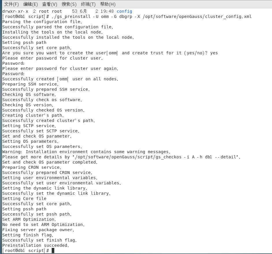 ./gs_preinstall -U omm -G dbgrp -X /opt/software/openGauss/cluster_config.xml