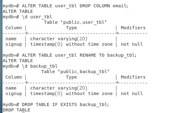 ALTER TABLE user_tbl RENAME TO backup_tbl;