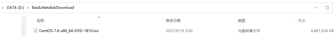 注:CentOS 7.6的安装镜像是 CentOS-7.6-x86_64-DVD-1810.iso