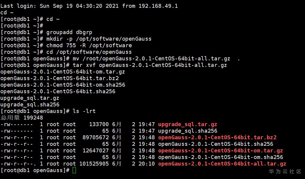 mv /root/openGauss-2.0.1-CentOS-64bit*.gz .
