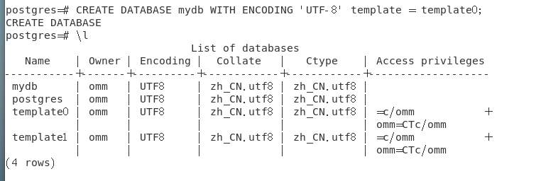 CREATE DATABASE mydb WITH ENCODING 'UTF-8' template = template0;