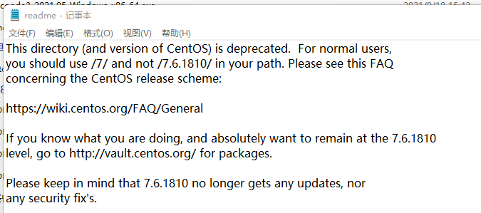 首先,需要下载CentOS 7.6的镜像,这个镜像在CentOS官网和华为云、网易云、阿里云等镜像站已经找不到了。