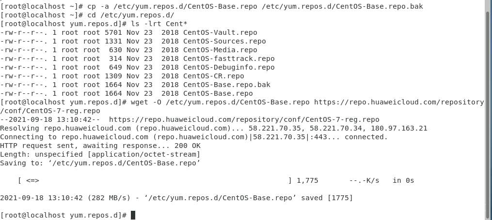 wget -O /etc/yum.repos.d/CentOS-Base.repo https://repo.huaweicloud.com/repository/conf/CentOS-7-reg.repo