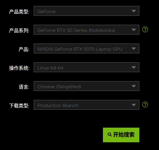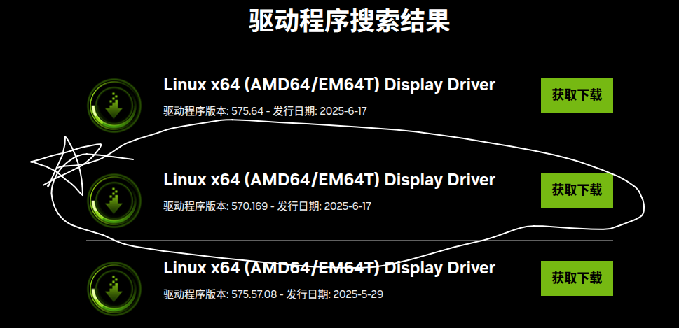 3:进入系统在nvidia官网选择驱动版本为570的,千万不要选择575的(我试过装了好几次都黑屏了)