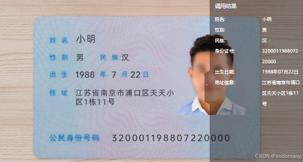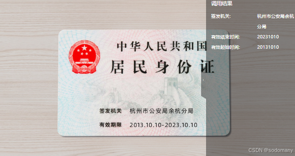 识别二代身份证关键字段内容,关键字段包括:姓名、性别、身份证号、出生日期、地址信息、有效起始时间、签发机关,同时可输出身份证区域位置和人脸位置信息。以下的是身份校验接口是基于阿里云的身份接口来开发的。