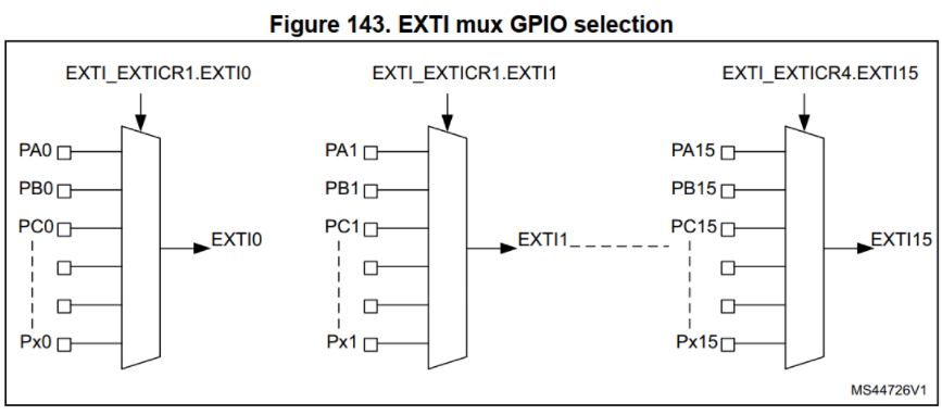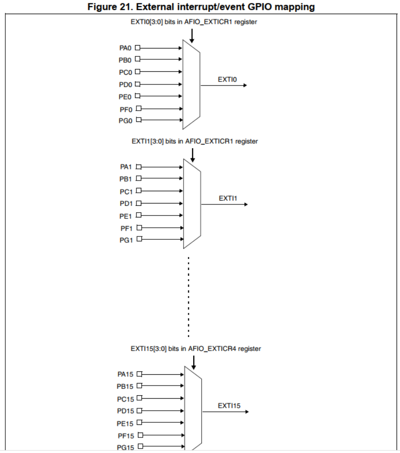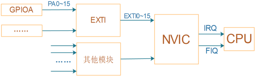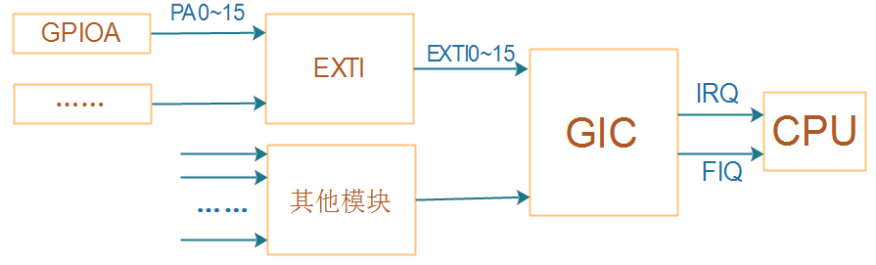 - 每个GPIO引脚(如PA0、PB1)对应一个“门禁卡”(中断线)。