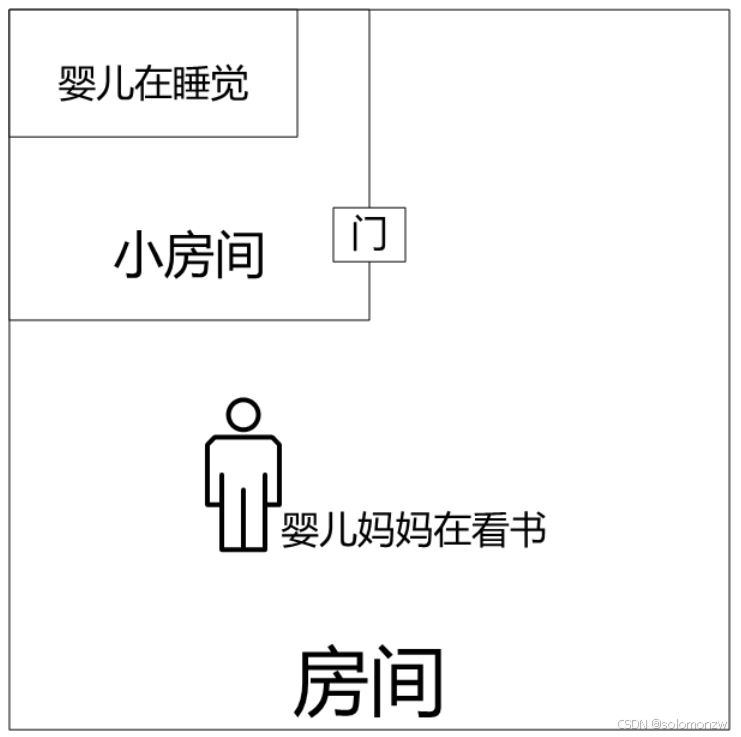 假设有个大房间里面有小房间,婴儿正在睡觉,他的妈妈在外面看书。 问:这个母亲怎么才能知道这个小孩醒?