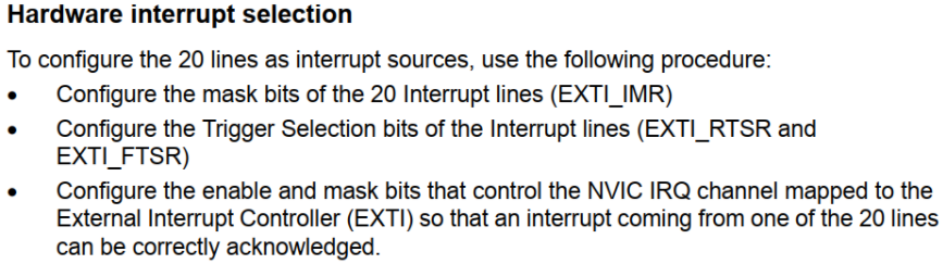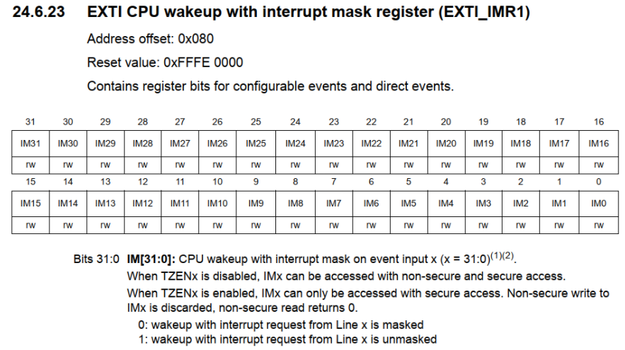 - 除了配置IMR寄存器,还需设置引脚触发方式(如上升沿/下降沿触发),否则中断可能无法正确触发。